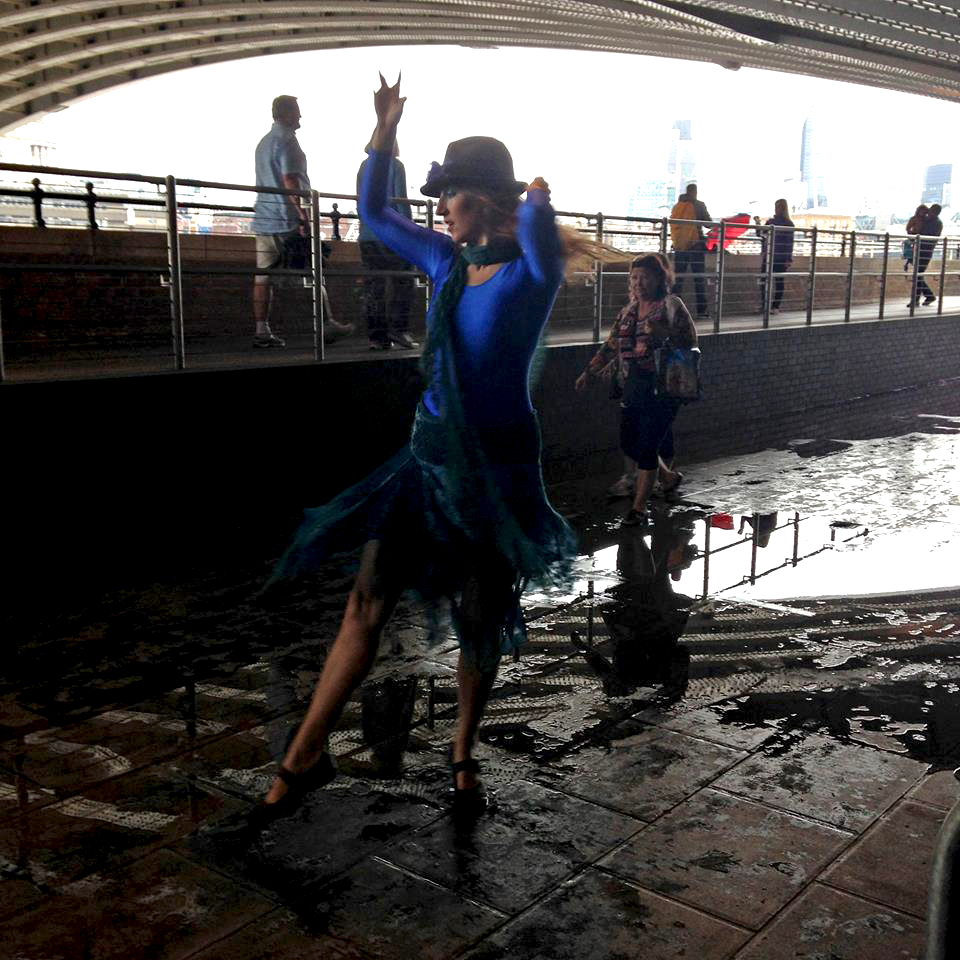 We started in front of Tate Modern at 12:30 pm on Sunday the 23rd of August and continue our creative walk along Thames until the huge rain stopped us at Blackfriars Bridge, where we gave a street performance of dance, live singing and live art.