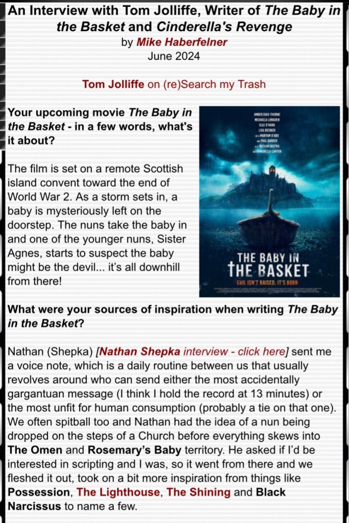 Tom is also talking about his other projects Cinderella Revenge that is having a global release around the world right now and Baby in The Basket which is entering festival stage.
